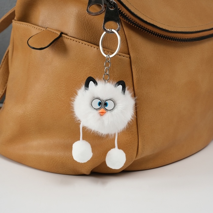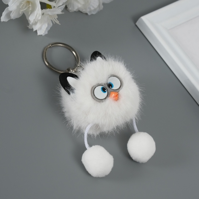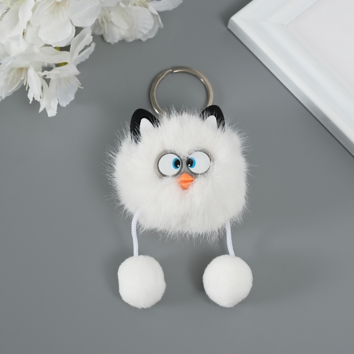 Пушистик на кольце "Косые глазки" белый 9,5х6х6 см