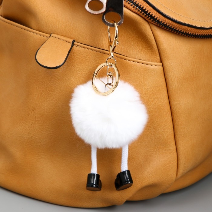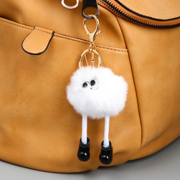 Пушистик на кольце с карабином "Чудик с длинными ножками в ботинках" белый