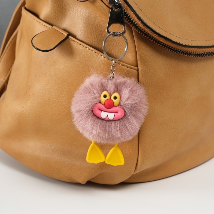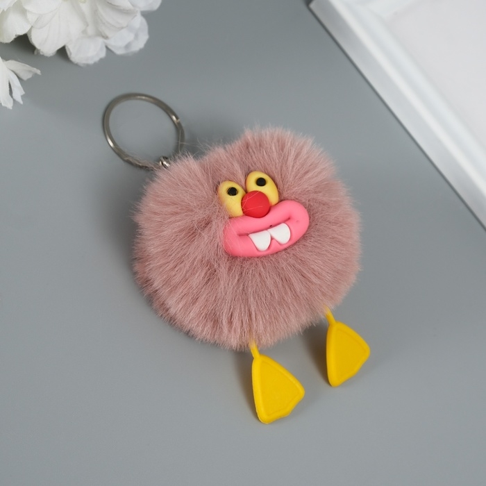 Пушистик на кольце "Зубастик" коричнево-розовый 7,6х6х6 см