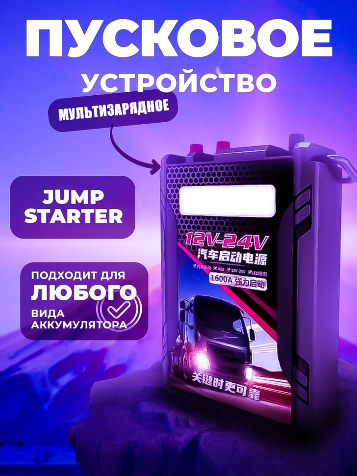 это мощнейшее устройство, предназначенное для пуска и зарядки любого автомобиля, грузового или легкового, для дизельного или бензинового двигателя, а так же подойдет для моторных лодок, мотоциклов, квадроциклов. За счет большой емкости аккумулятора, двигатель автомобиля можно запустить до 600 раз.