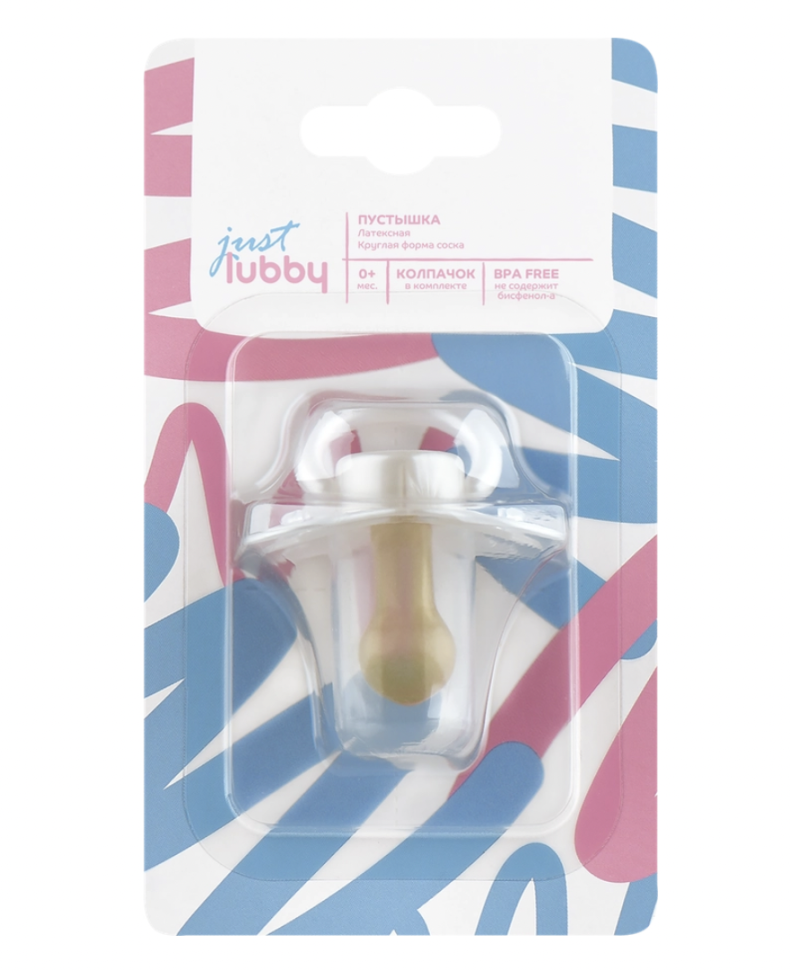 Пустышка LUBBY Just латексная с круглым соском и колпачком, с 0 месяцев