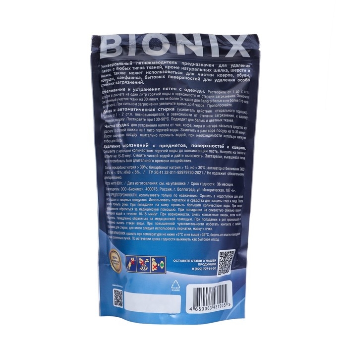 Пятновыводитель-отбеливатель представлен в упаковке весом 800 грамм, что позволяет использовать его долгое время. Он легко наносится на пятно и быстро начинает действовать, удаляя даже самые стойкие загрязнения. Средство также обладает отбеливающим эффектом, возвращая белью первоначальную белизну и яркость.