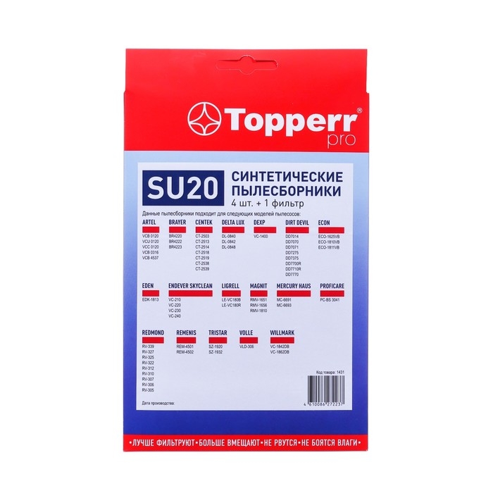 Пылесборник Topperr синтетический для пылесоса CENTEK представляет собой комплект из четырех пылесборников и одного фильтра. Эти пылесборники изготовлены из высококачественного синтетического материала, что обеспечивает их долговечность и эффективность.