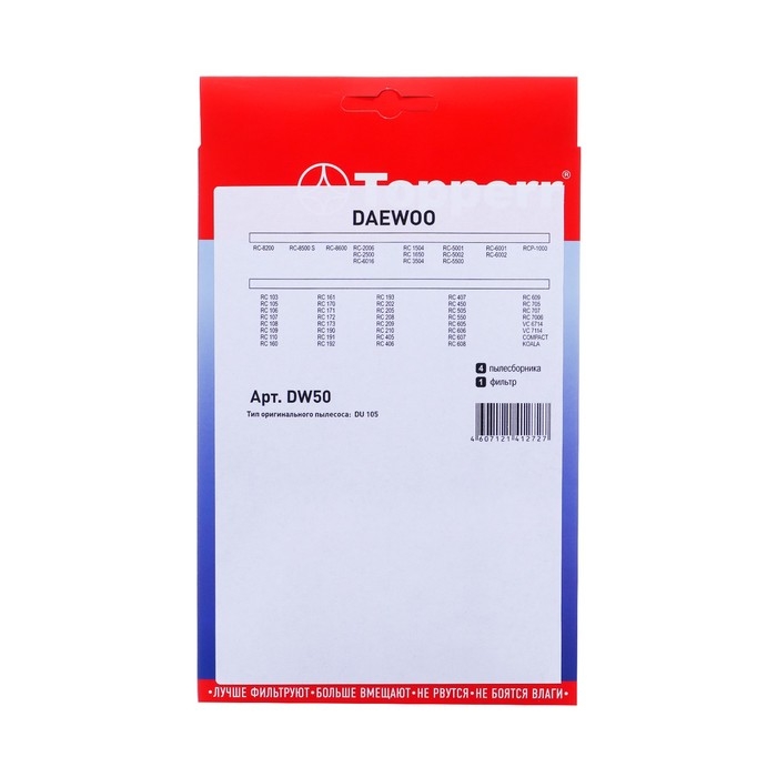 Пылесборник Topperr синтетический для пылесоса Daewoo представляет собой комплект из четырех пылесборников.