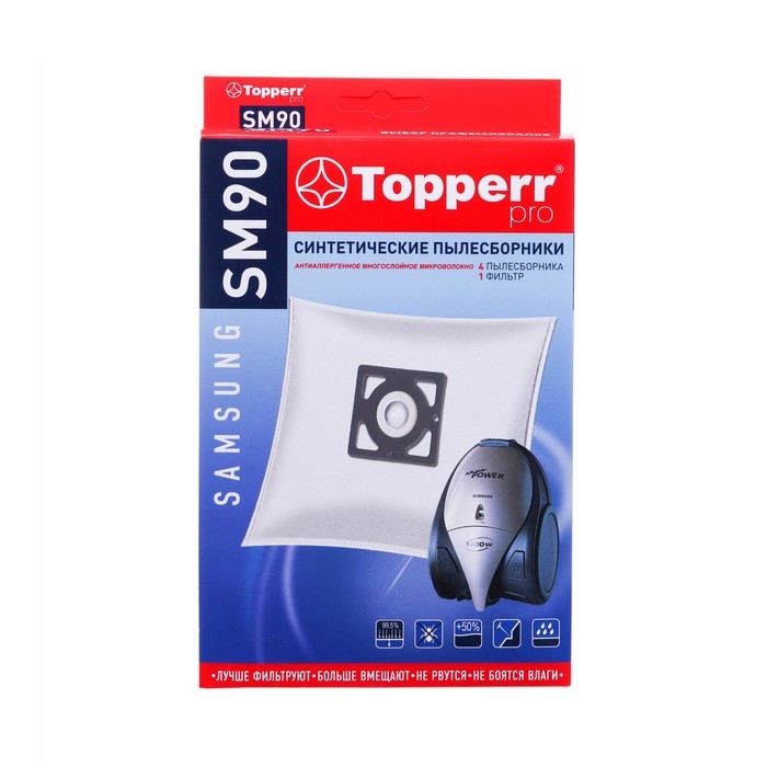 Пылесборник Topperr синтетический для пылесоса Samsung (Тип VP-95), 4 шт - это высококачественные мешки для сбора пыли, предназначенные для использования в пылесосах Samsung.