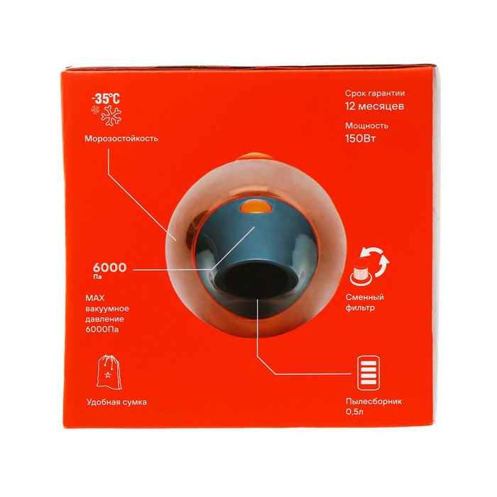 Пылесос автомобильный Airline CYCLONE TURBO VCA-03, 150 Вт, 0.5 л, 6 кПа, в сумке