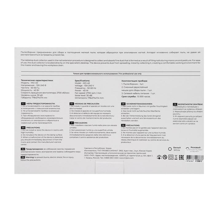 Пылесос для маникюра TNL Motion, 40 Вт, 2700 об/мин, 30 Дб, 220 В, розовый
