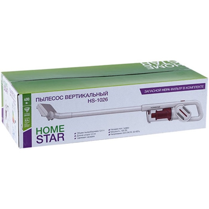 Пылесос HomeStar HS-1026, вертикальный, 400 Вт, сухая уборка, 0.4 л, белый