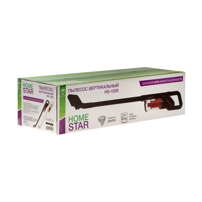 Пылесос HomeStar HS-1026, вертикальный, 400 Вт, сухая уборка, 0.4 л, чёрный