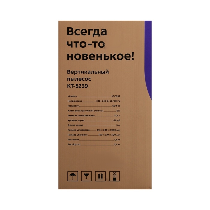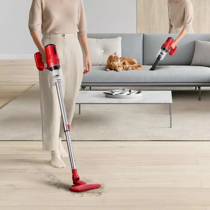 Пылесос Kitfort КТ-5239, вертикальный, 600 Вт, 0.8 л, красно-белый