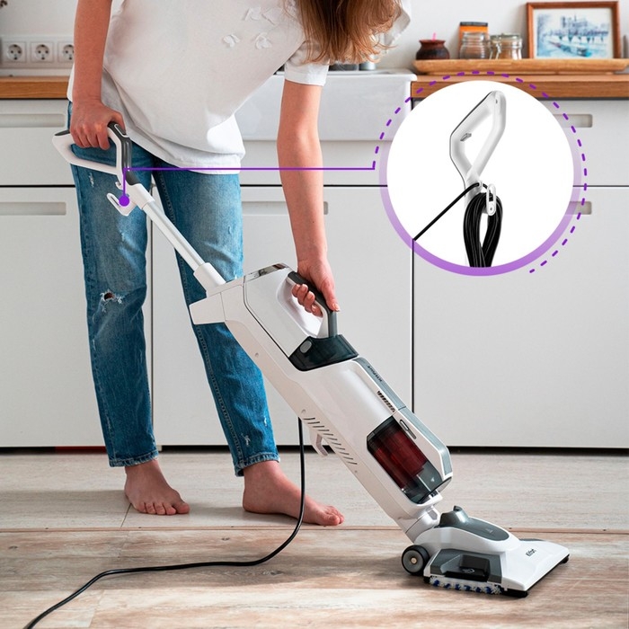 Пылесос Kitfort КТ-595, вертикальный, 1800 Вт, сухая/влажная уборка, 0.3/0.5 л, белый