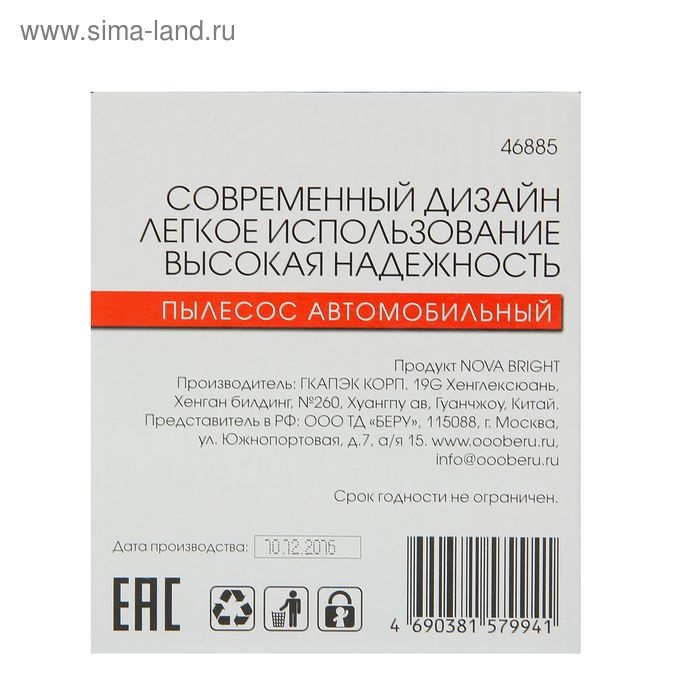 Пылесос Nova Bright, для сухой и влажной уборки, 60 Вт, 12 В, красный. Не секрет, что машина давно уже перестала восприниматься как просто средство передвижения, и водители покупают всё лучшее для своих железных коней. Пылесос Nova Bright, для сухой и влажной уборки — идеальный выбор, если вы ставите целью и улучшение технических характеристик, и поддержание внешнего вида автомобиля.