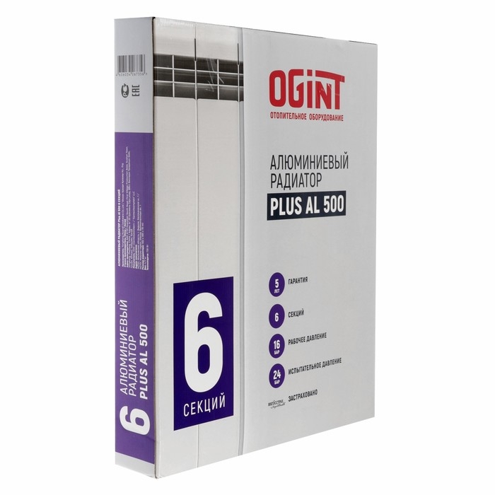 Радиатор алюминиевый Ogint Plus AL, 500 х 78 мм, 6 секций, 738 Вт