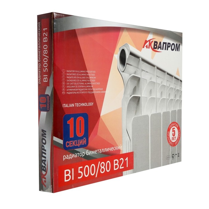 Радиатор биметаллический AQUAPROM B21, 500 x 80 мм, 10 секций