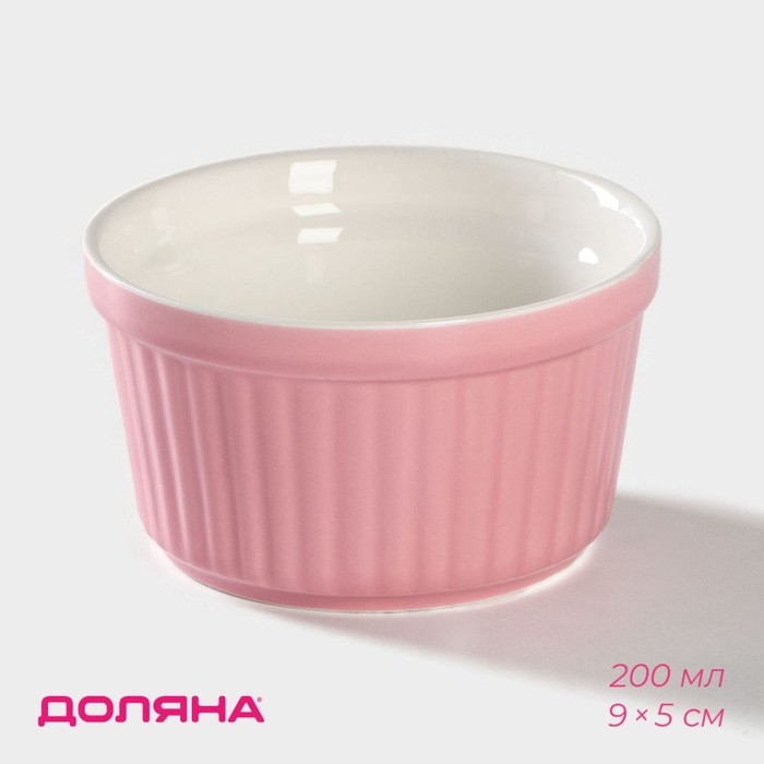 Рамекин из жаропрочной керамики Доляна «Нюд», 200 мл, 9×5 см, цвет розовый