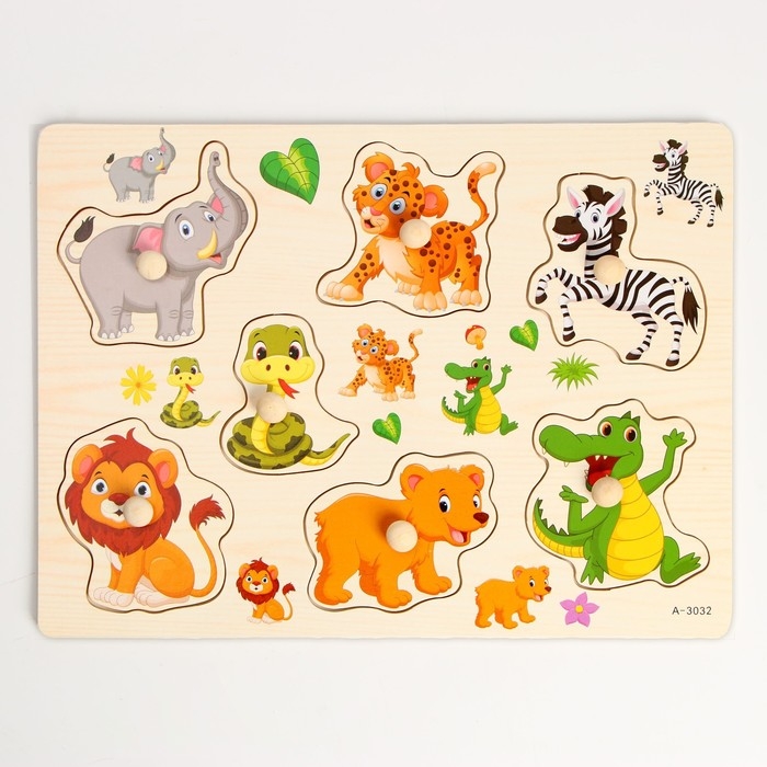 С помощью рамки-вкладыша ребёнок познакомится с животными нашей планеты. Для большей продуктивности занимайтесь вместе с ребёнком, расскажите о среде обитания зверей и чем они питаются.