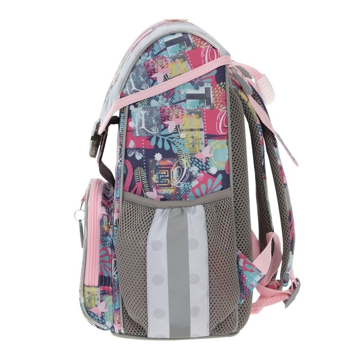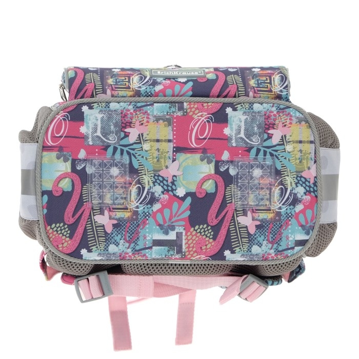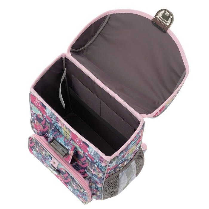 Жёстко-каркасный ранец с эргономичной спинкой. Объём: 15 литров. Вес: 680 грамм — один из самых лёгких в категории. Без дополнительной фурнитуры. Одно вместительное отделение, внутри эластичный фиксатор для тетрадей и учебников формата А4+ и мини-органайзер для канцелярских принадлежностей. Снаружи фронтальный карман на надёжной молнии с мягким ходом и два боковых кармана на резинке для бутылки с водой или зонтика. Эргономичная конструкция спинки ErgoLine®System из мягких подушечек распределяет вес ранца и снижает нагрузку на позвоночник ребёнка. "Дышащая" ткань AirMesh и воздушные каналы между подушечками спинки препятствуют образованию влаги. Мягкие S-образные лямки не давят на плечи. Светоотражающие элементы по всему периметру ранца. Ручка с резиновой накладкой для переноски в руке. Крепления ручки и лямок усилены дополнительными швами из лавсановых нитей. 100% полиэстер Оксфорд с полиуретановой пропиткой устойчив к износу и морозу. Пластиковые ножки защищают от загрязнений и влаги.