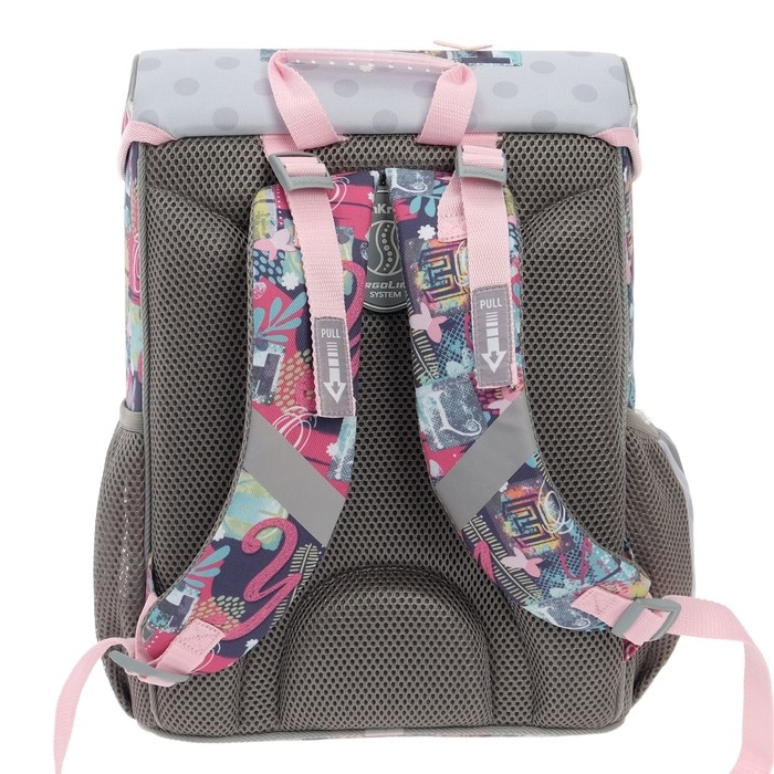 Рюкзак каркасный школьный 38 х 30 х 16 см, эргономичная спинка, Stavia "Фламинго мини", чёрный/розовый