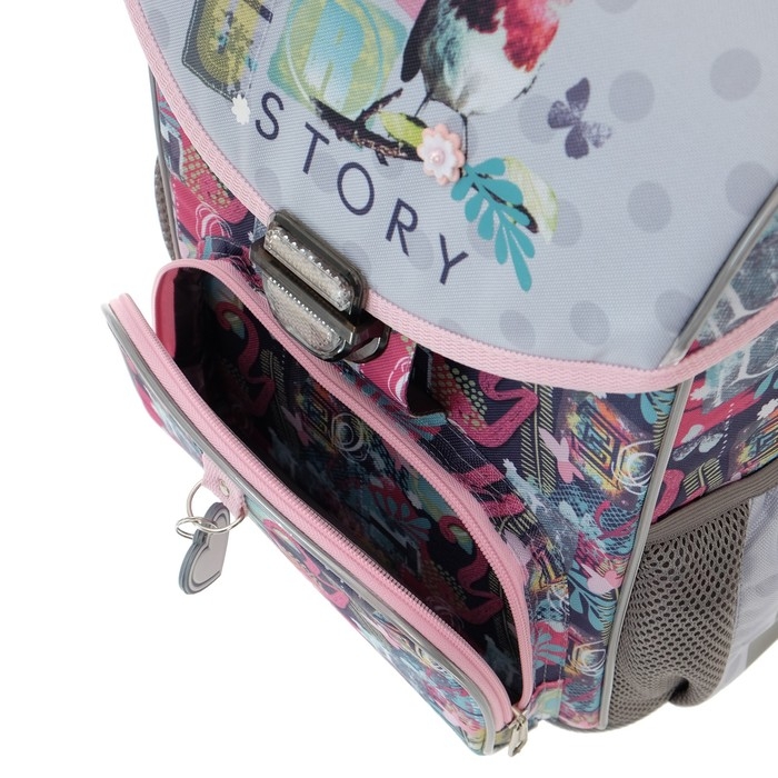 Ранец школьный на замке, 37 х 25 х 14 см, Erich Krause ErgoLine 15L, Bird Story 52588