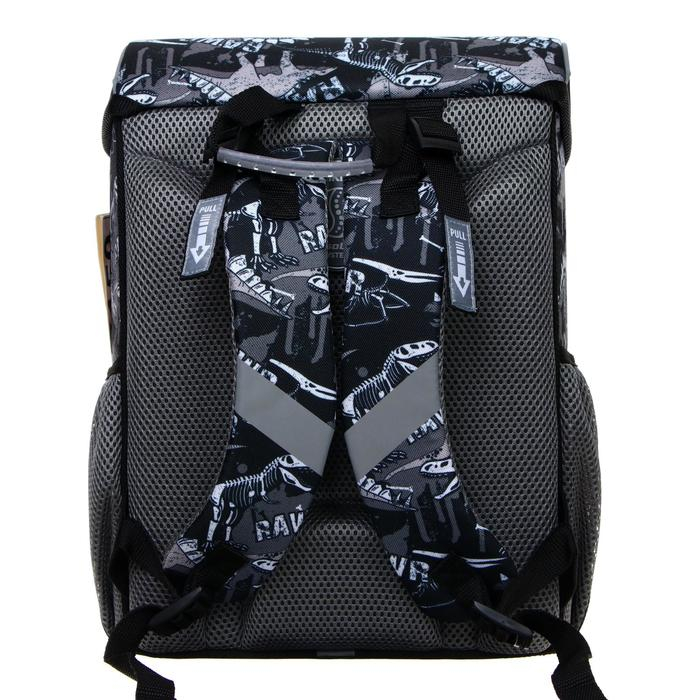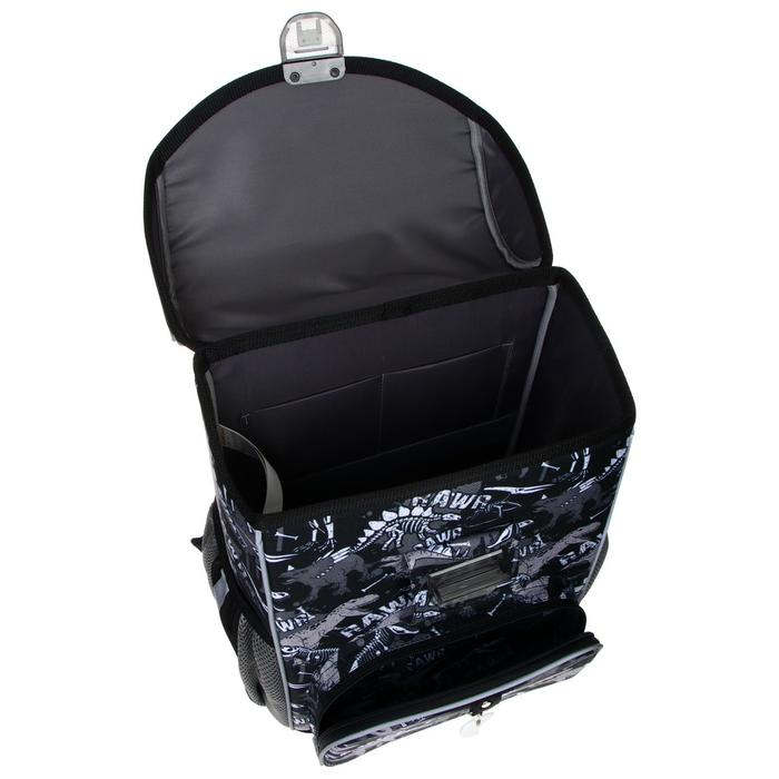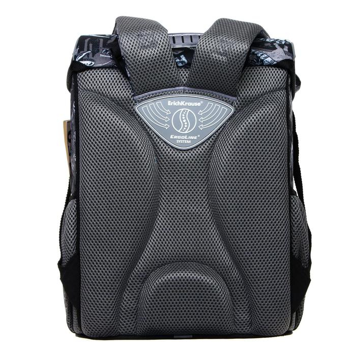 Жёстко-каркасный ранец с эргономичной спинкой. Объём: 15 литров. Вес: 680 грамм* — один из самых лёгких в категории. *Без дополнительной фурнитуры. Одно вместительное отделение, внутри эластичный фиксатор для тетрадей и учебников формата А4+ и мини-органайзер для канцелярских принадлежностей. Снаружи фронтальный карман на надёжной молнии с мягким ходом и два боковых кармана на резинке для бутылки с водой или зонтика. Эргономичная конструкция спинки ErgoLine®System из мягких подушечек распределяет вес ранца и снижает нагрузку на позвоночник ребёнка. "Дышащая" ткань AirMesh и воздушные каналы между подушечками спинки препятствуют образованию влаги. Мягкие S-образные лямки не давят на плечи. Светоотражающие элементы по всему периметру ранца. Ручка с резиновой накладкой для переноски в руке. Крепления ручки и лямок усилены дополнительными швами из лавсановых нитей. 100% полиэстер Оксфорд с полиуретановой пропиткой устойчив к износу и морозу. Пластиковые ножки защищают от загрязнений и влаги.