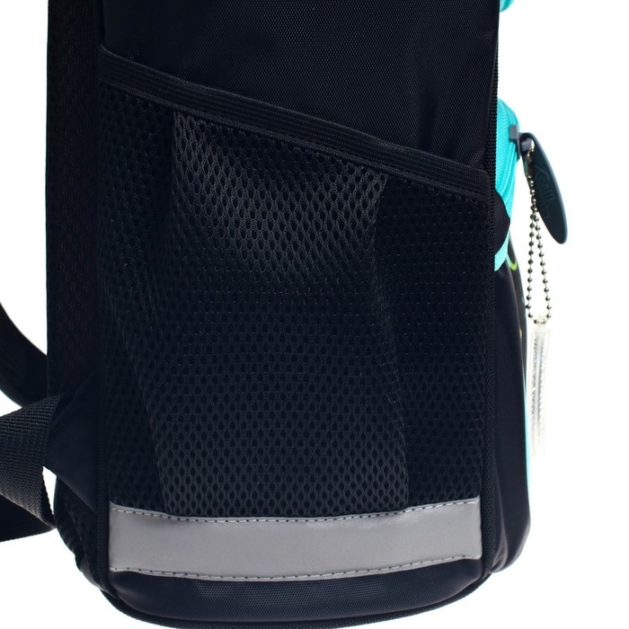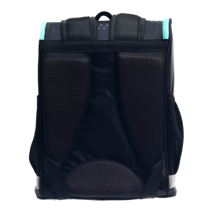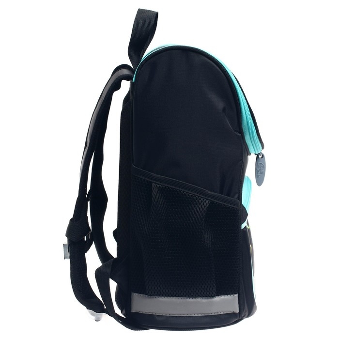 Боковые стенки ранца, усиленные деталями из ПВХ, жёсткое формованное дно и формованный верхний клапан делают изделие более прочным и защищают содержимое от механических повреждений. Мягкая анатомическая спинка, изготовленная из "дышащих" материалов и регулируемые плечевые лямки обеспечивают комфортную посадку ранца на спине ребёнка. Возможна комплектация нагрудной стяжкой. На передней поверхности, боковых стенках и на лямках присутствуют световозвращающие элементы, дополняет их брелок-катафот. Рюкзак укомплектован мешком для обуви с аналогичным принтом