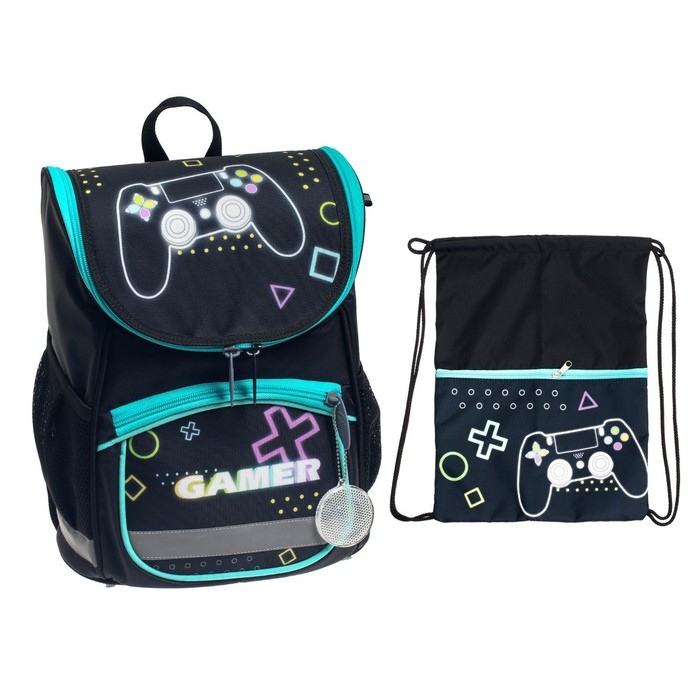 Ранец школьный Стандарт, 36 х 26 х 16 см, + мешок для обуви 40 х 32 см, Calligrata П "Гейм", чёрный