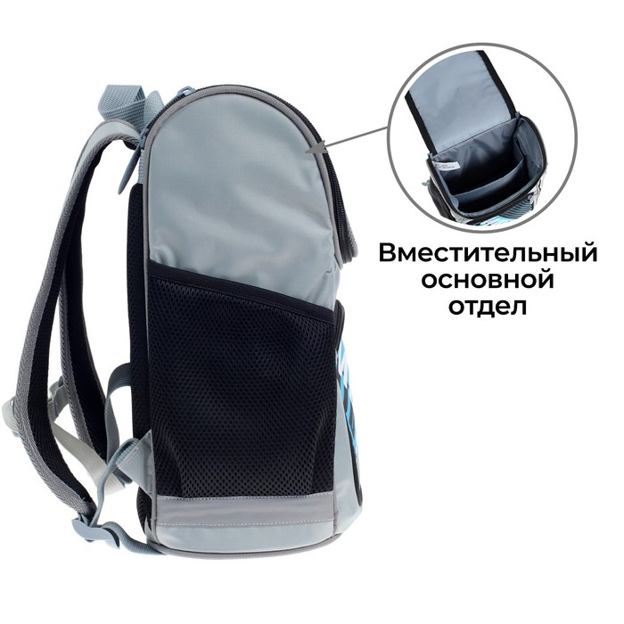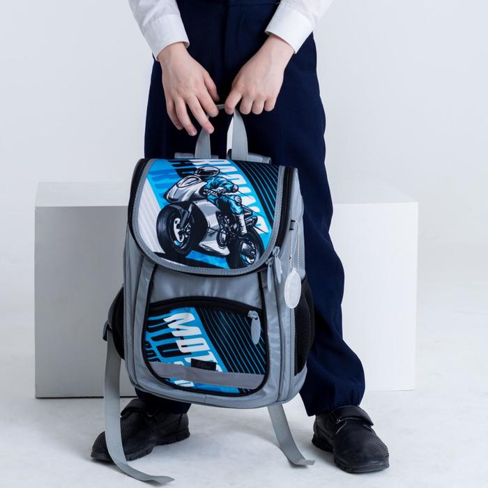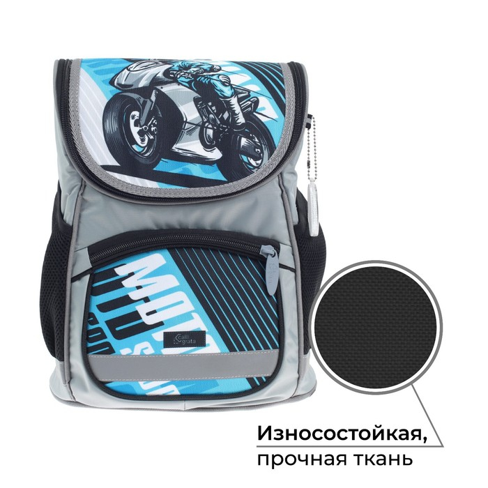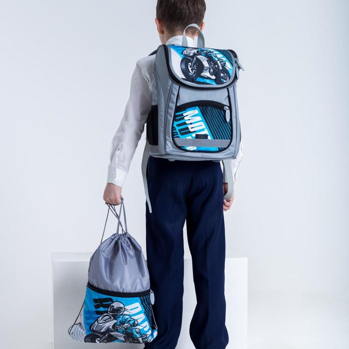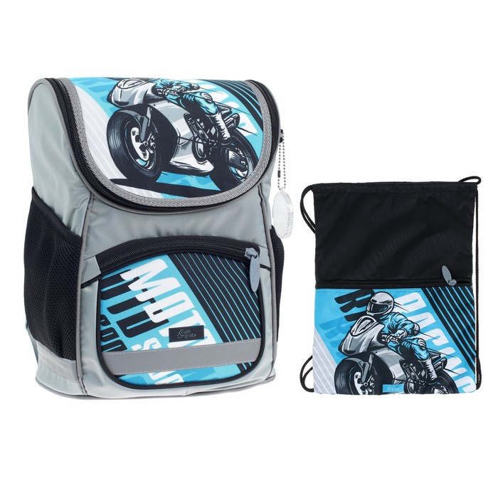 Ранец школьный Стандарт, 36 х 26 х 16 см, + мешок для обуви 40 х 32 см, Сalligrata П "Мото", серый