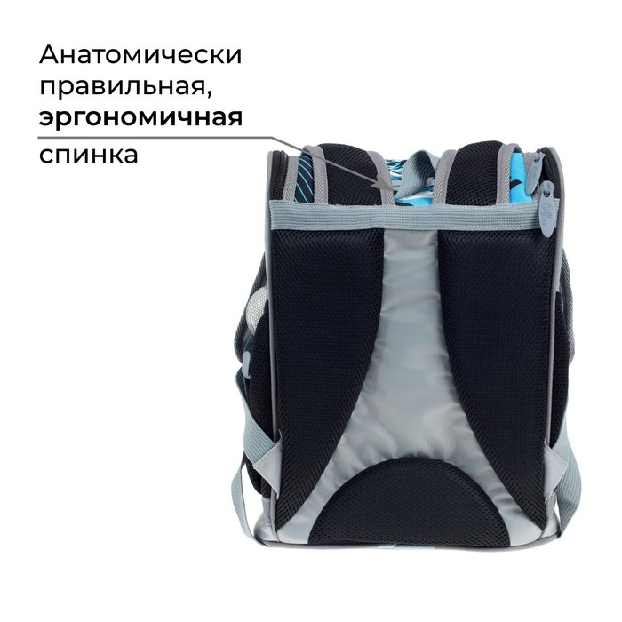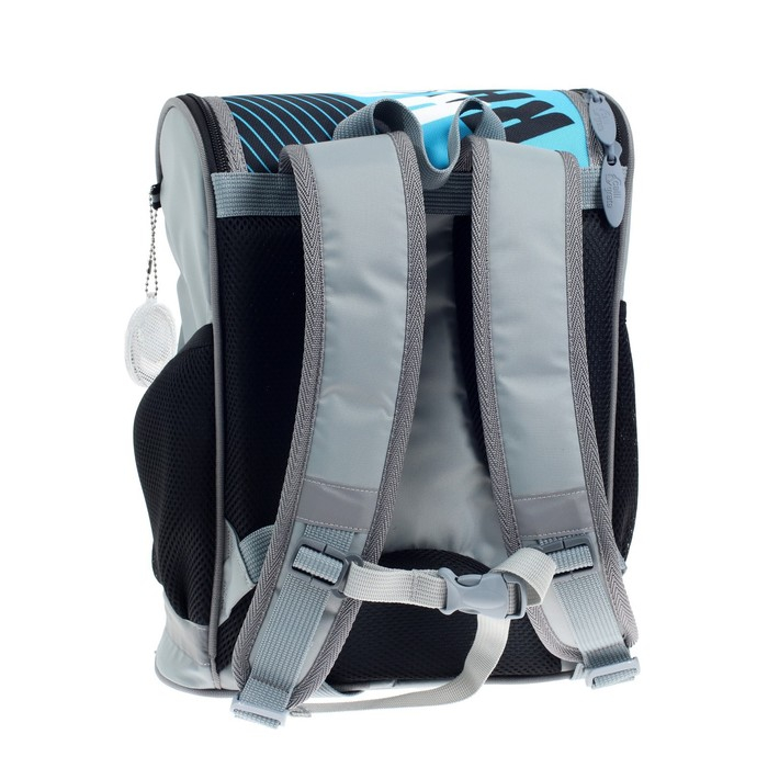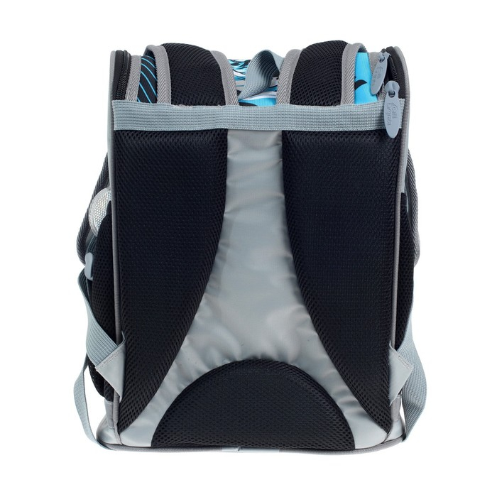 Боковые стенки ранца, усиленные деталями из ПВХ, жёсткое формованное дно и формованный верхний клапан делают изделие более прочным и защищают содержимое от механических повреждений. Мягкая анатомическая спинка, изготовленная из "дышащих" материалов и регулируемые плечевые лямки обеспечивают комфортную посадку ранца на спине ребёнка. Возможна комплектация нагрудной стяжкой. На передней поверхности, боковых стенках и на лямках присутствуют световозвращающие элементы, дополняет их брелок-катафот. Рюкзак укомплектован мешком для обуви с аналогичным принтом