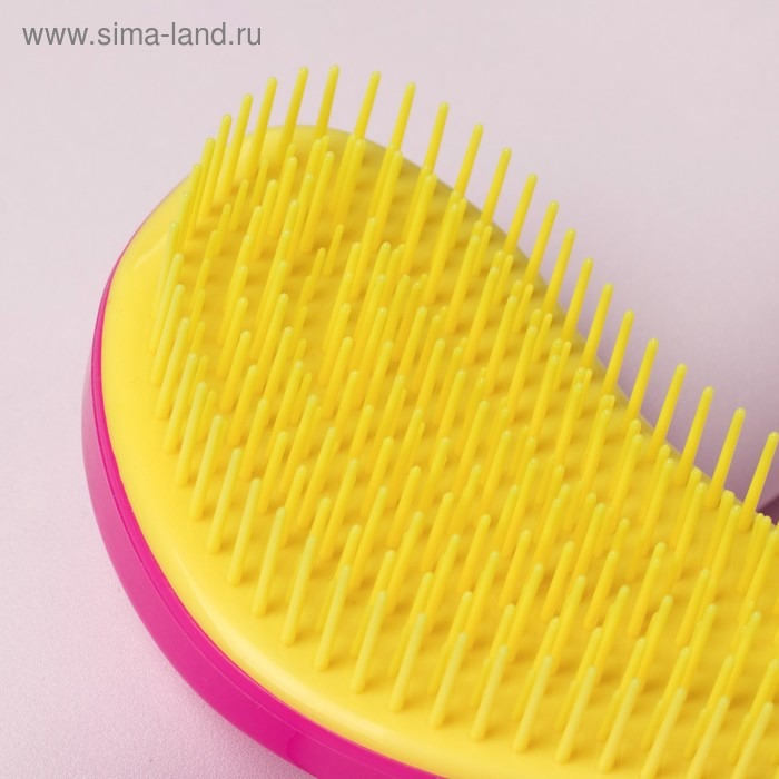 Расчёска массажная, 6 × 14,5 см, PVC коробка, цвет розовый/жёлтый