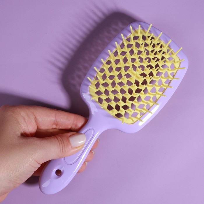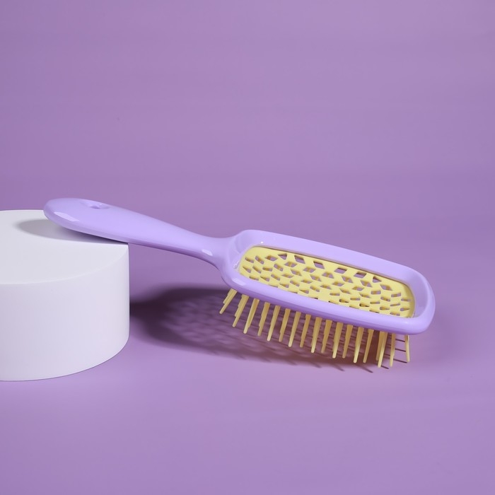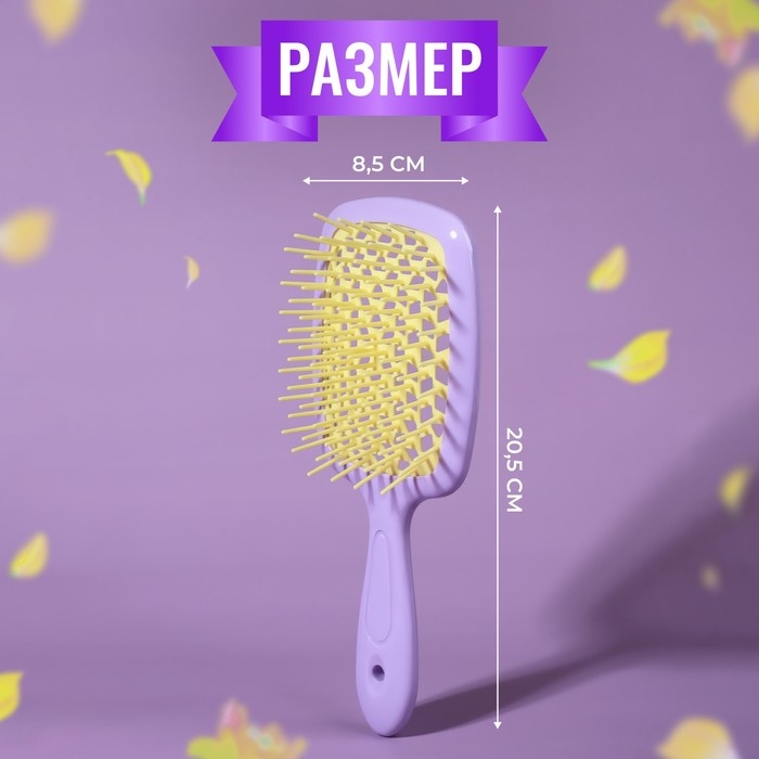 Расчёска массажная, широкая, вентилируемая, 8,5 × 20,5 см, PVC коробка, цвет сиреневый/жёлтый
