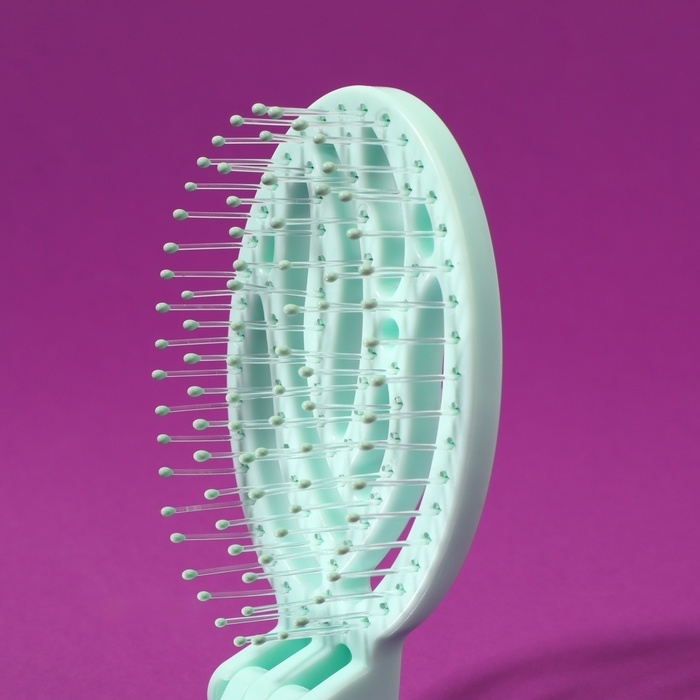 Расчёска массажная, складная, с зеркалом, 9,5 × 5,5 см, цвет бирюзовый