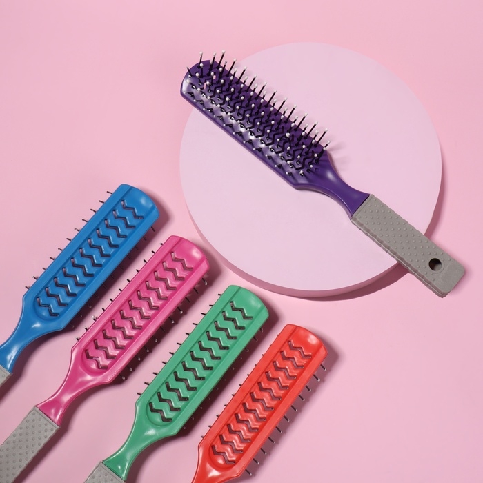 Расчёска массажная, широкая, вентилируемая, 8,4 × 20,5 см, цвет МИКС