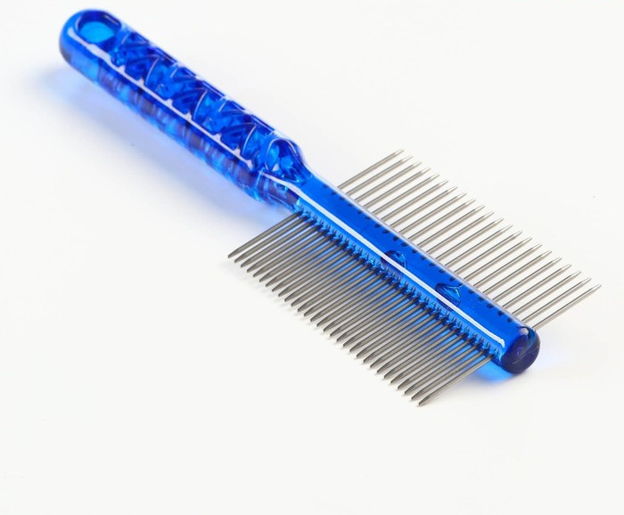 С одной стороны расчески частые зубцы, с другой - более редкие, что позволяет с ее помощью ухаживать за шерстью разных животных.