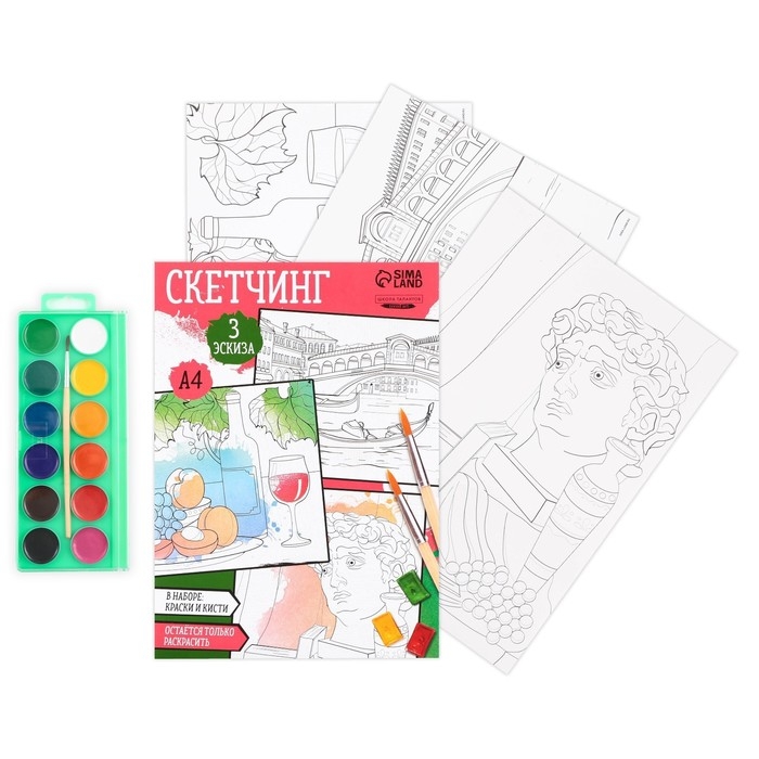 Раскраска акварелью с красками «Акварельные сюжеты», А4