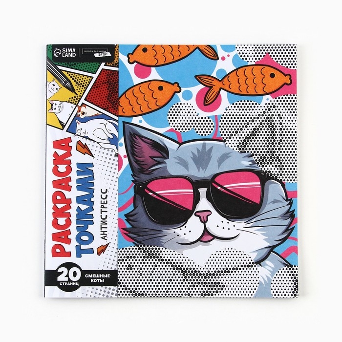 Раскраска-антистресс по точкам «Крутые котики», 20 стр