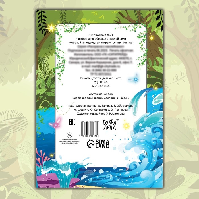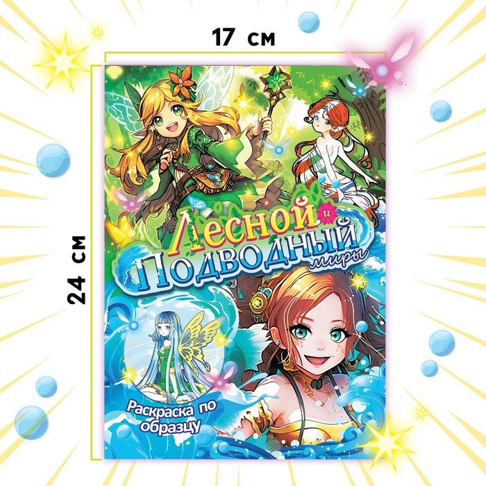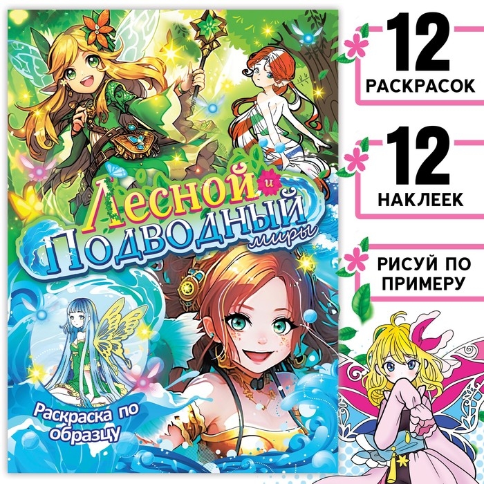 Раскраска по образцу с наклейками «Лесной и подводный миры», 16 стр., Аниме