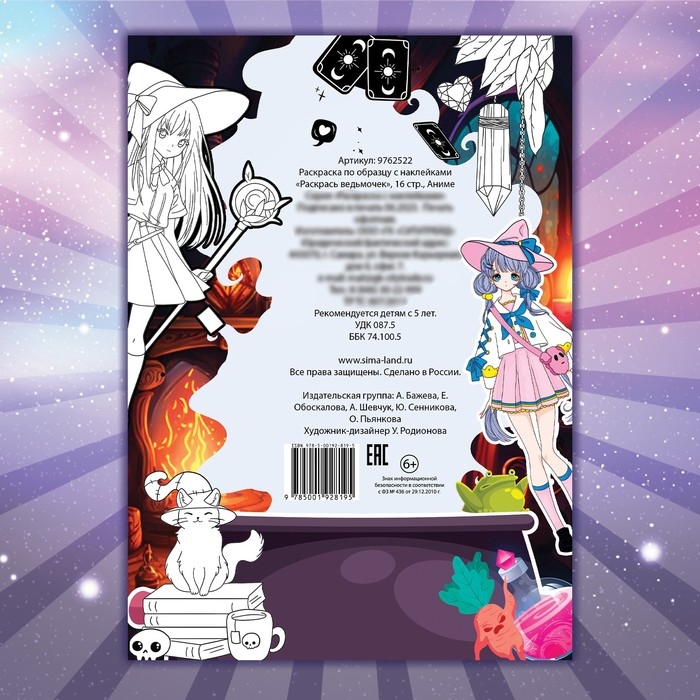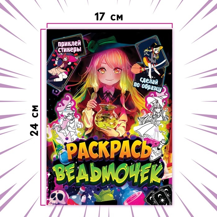 Раскраска по образцу с наклейками «Раскрась ведьмочек», 16 стр., Аниме