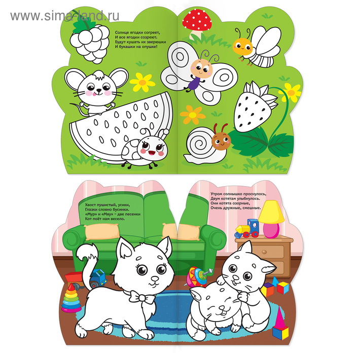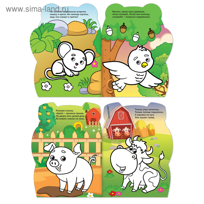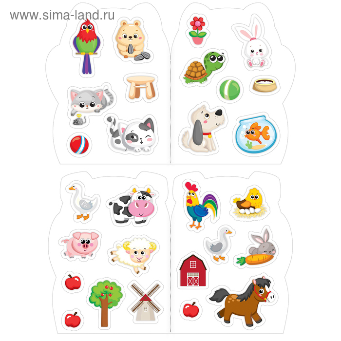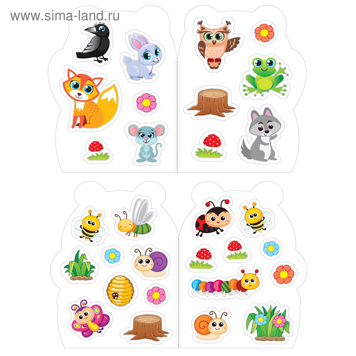 Раскраски с наклейками — это двойное удовольствие для ребёнка! Малыш познакомится с милыми персонажами и раскрасит все картинки. Расскажите ребёнку о животных, птичках, фруктах и растениях и разучите стихи о них.