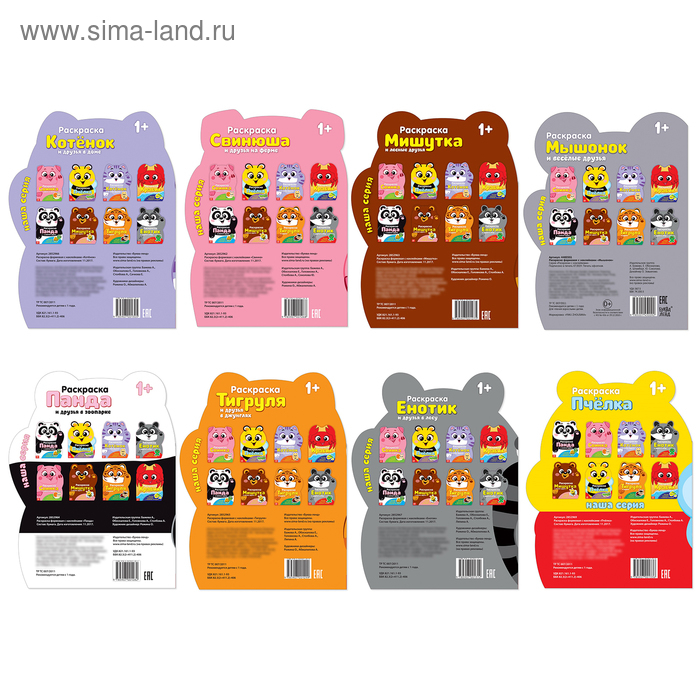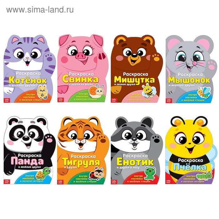 Раскраски с наклейками набор «Котёнок и друзья», 8 шт. по 12 стр.