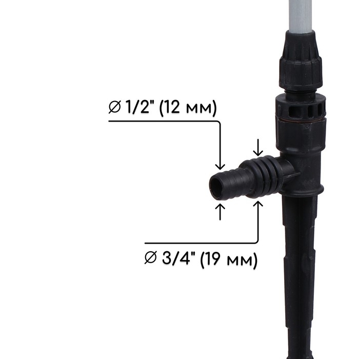 В комплекте с распылителем идёт универсальный штуцер для подключения шлангов диаметром 1/2 и 3/4.
