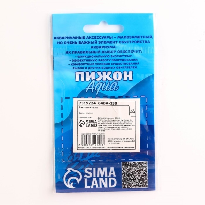Распылитель находится на конце шланга компрессора и превращает струю воздуха в мелкие пузырьки, которые насыщают воду кислородом. От качества элемента зависит чистота жидкости, здоровье рыбок и других обитателей аквариума. Распылитель сделан из высококачественного материала. Мелкие поры не создают течения и эффективно растворяют кислород в воде, позволяя вашим любимцам свободно дышать. Деталь легко снять и установить, поэтому даже в случае поломки аэрация аквариума не прервётся надолго.