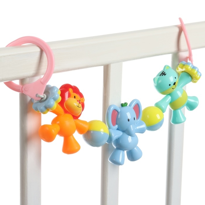 Растяжка на коляску/кроватку «Друзья», 3 игрушки с погремушками, цвет МИКС, Крошка Я