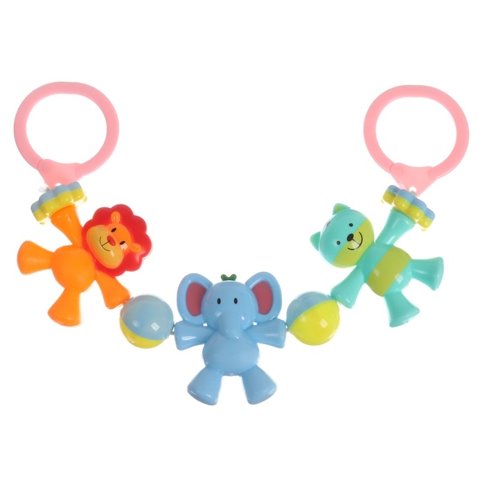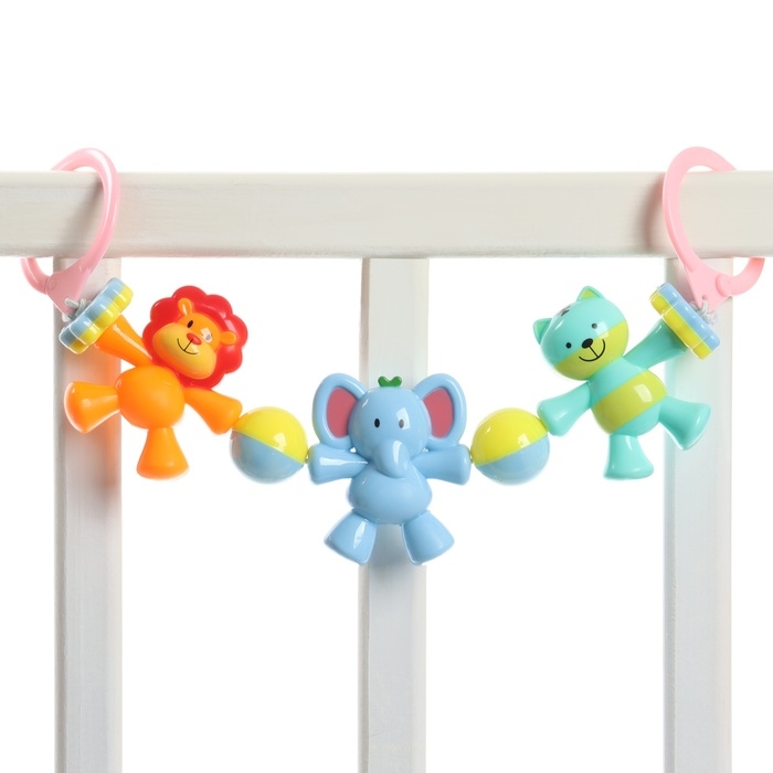 Растяжка на коляску/кроватку «Слоник», 3 игрушки с погремушками, цвет МИКС, Крошка Я