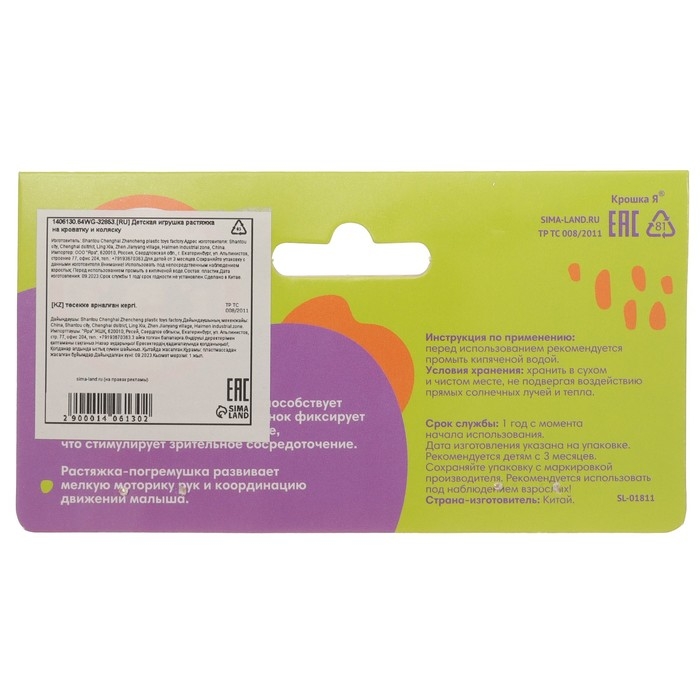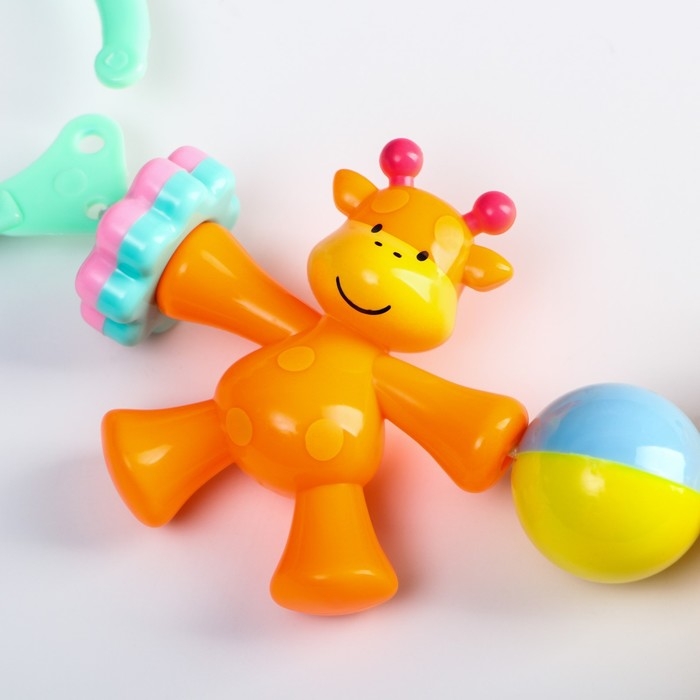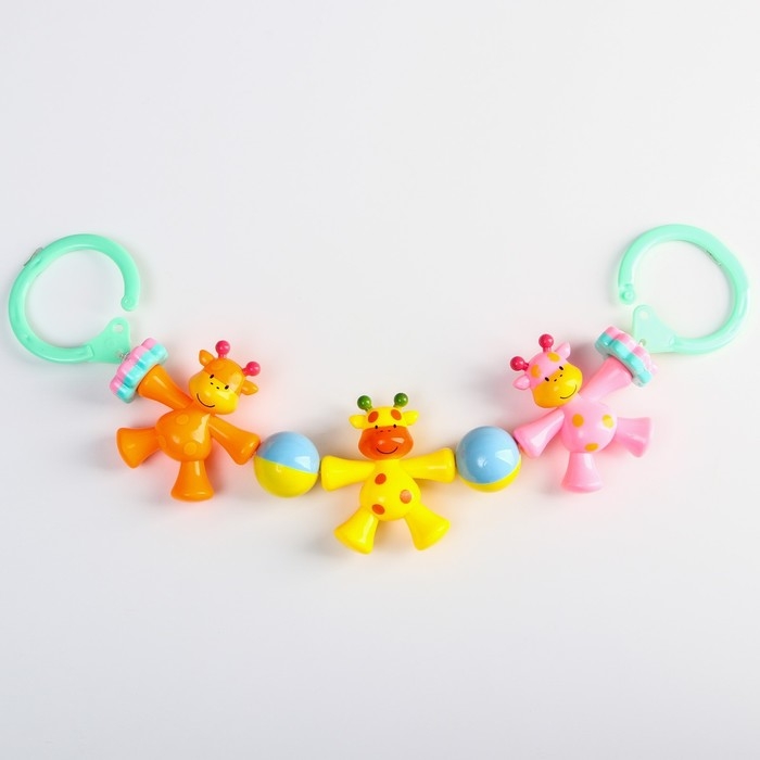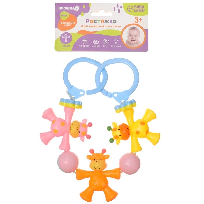Растяжка на коляску/кроватку «Жирафики», 3 игрушки с погремушками, цвет МИКС, Крошка Я