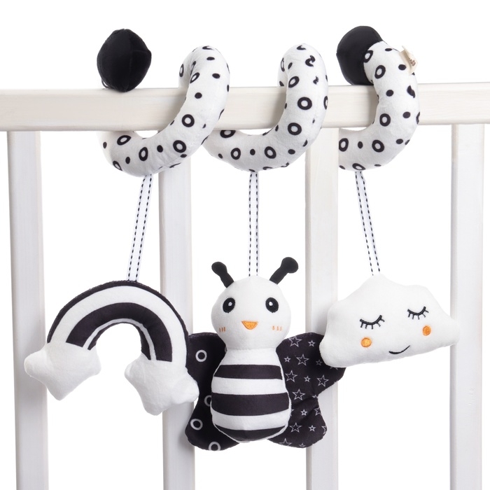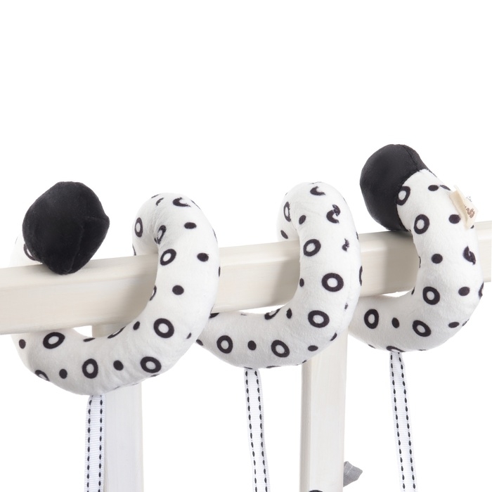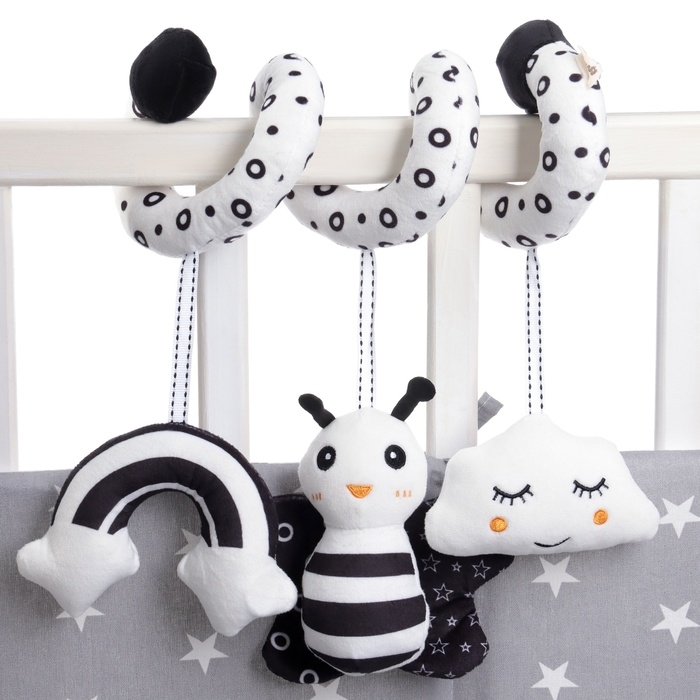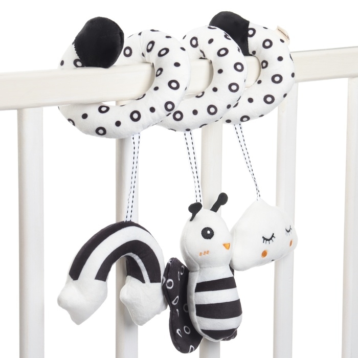 Мягкую и гибкую спиралевидную растяжку можно легко обмотать вокруг бортика кроватки, ручки автокресла, бампера коляски, разместить на шезлонг.