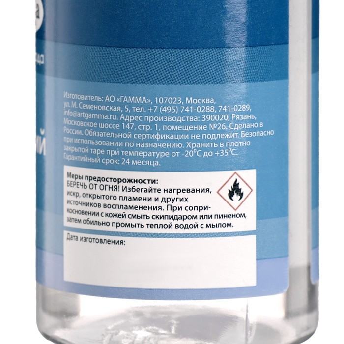 Разбавитель для масляных красок 100 мл "Гамма. Студия", слабопахнущий