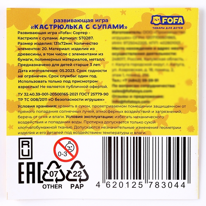 Разивающая игра сортер «Кастрюля с супами»