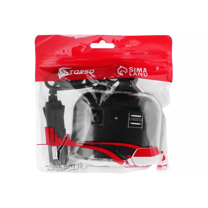 Разветвитель прикуривателя TORSO, 12-24 В, USB 2А, провод 50 см, подсветка