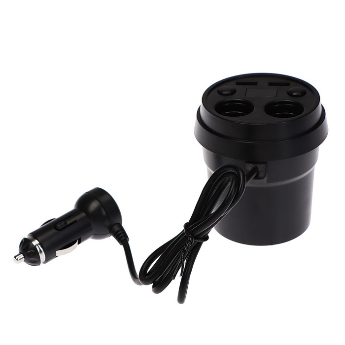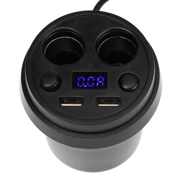Разветвитель прикуривателя устанавливается в штатный подстаканник. Имеет 2 гнезда под прикуриватель, 2 Usb-выхода и вольтметр.
