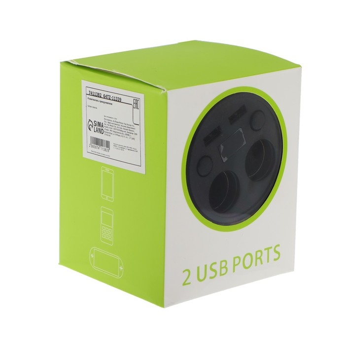 Разветвитель прикуривателя, вольтметр, 2 USB, 2 выхода, провод 50 см